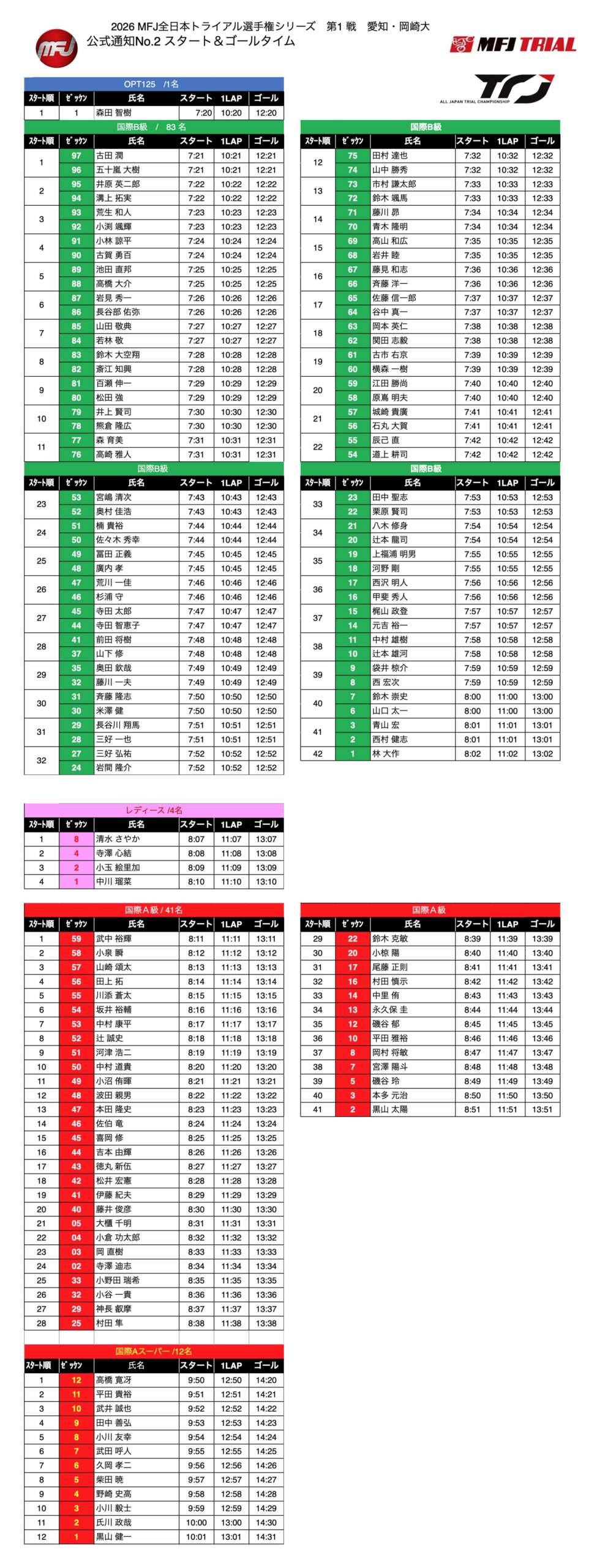 4月12日開催、全日本トライアル選手権第1戦 愛知・岡崎大会のタイムケジュール、各選手スタート/ゴール時間です。観戦の参考にしてください。 タイムス…