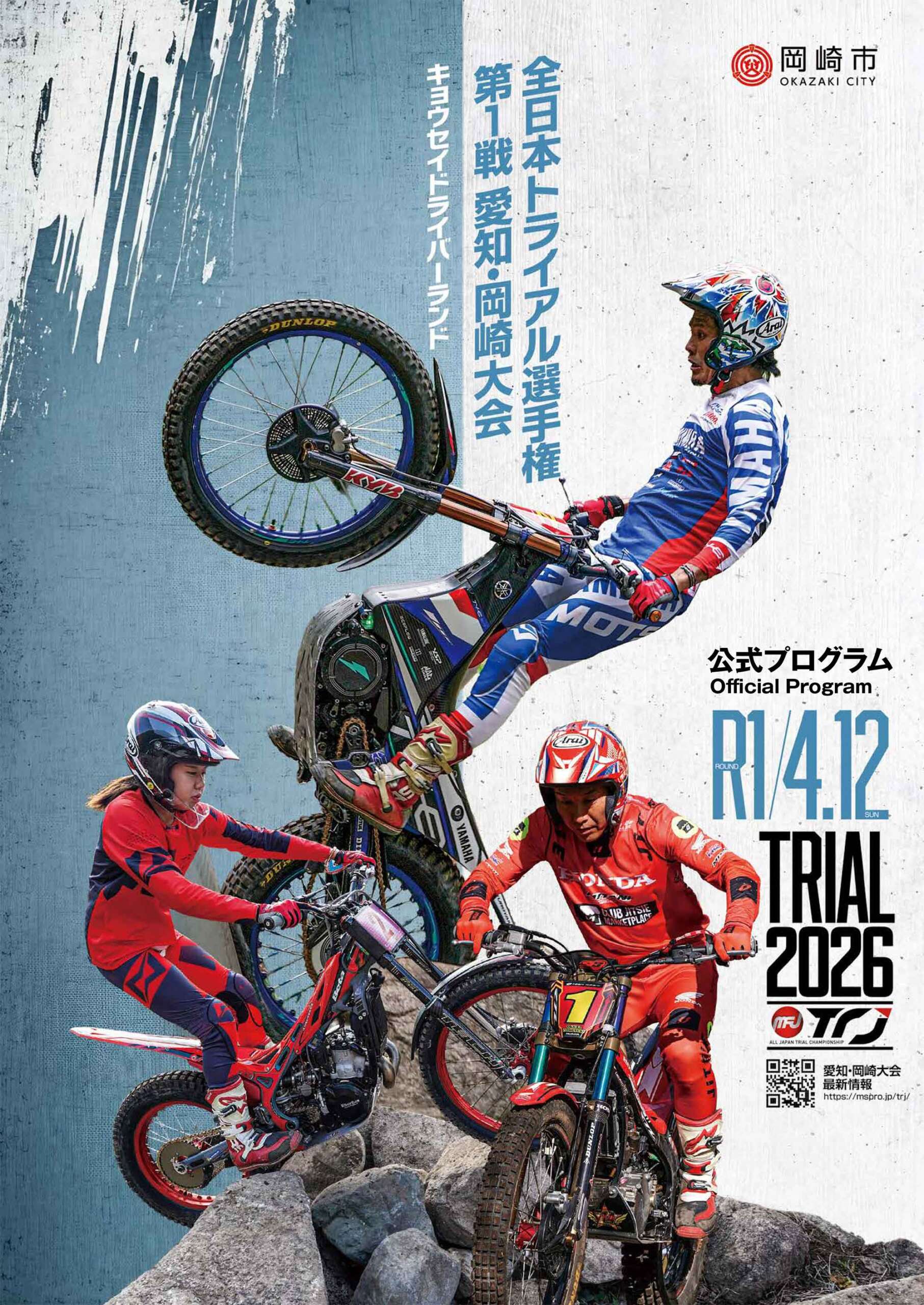 4月12日(日)開催、全日本トライアル選手権 第1戦 愛知・岡崎大会「公式プログラム」PDF版です。大会の見どころ、選手紹介、タイムスケジュール、エン…