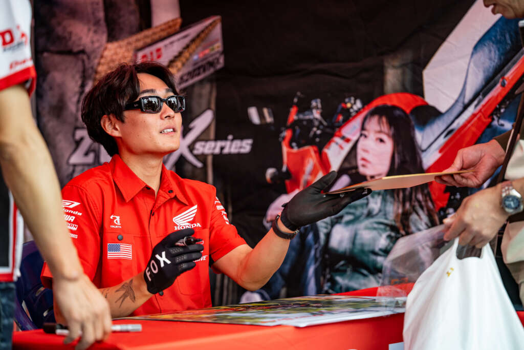 さらに、今大会には2025年のAMAスーパーモトクロス(SMX)250クラスにて日本初のチャンピオンを獲得した下田丈選手が来場。日曜にD.I.Dブースとホンダブースにてサイン会を開催。さらにモトクロスの国別対抗戦「モトクロス・オブ・ネイションズ」の日本代表凱旋セレモニーが行われ、代表ライダーの大倉由揮選手・中島漱也選手・下田丈選手、チーム監督の熱田高輝氏が登壇した。さらに下田選手のタイトル獲得記念トークショーを行い、多くのファンが集まった。