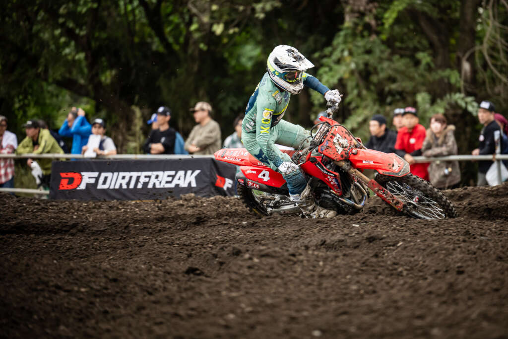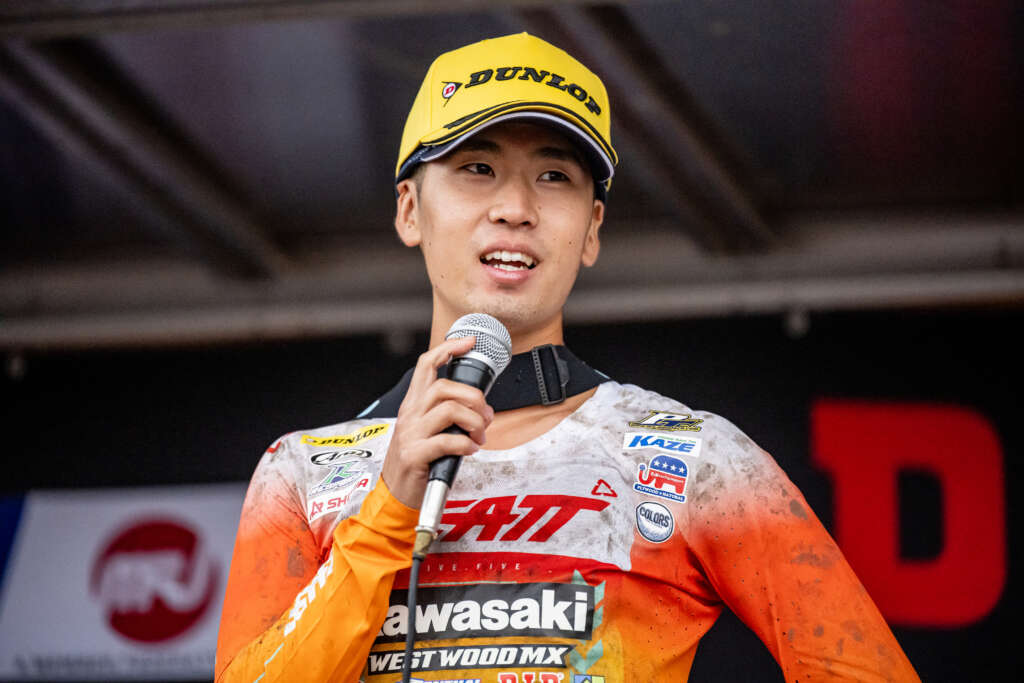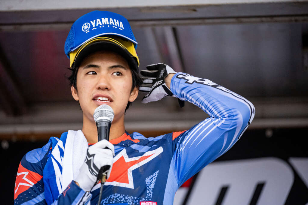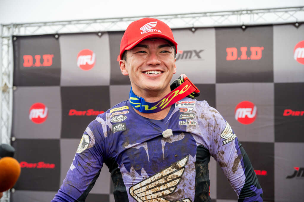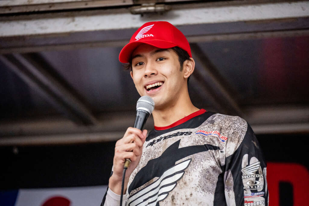 「全日本モトクロス選手権にくるのは実は初めてではありません。85ccの時に1回、2024年の最終戦に1回来ています。ただ1回目は大雨でレースが中止になって、2回目は練習走行で転倒してしまい予選に出ることができませんでした。なので、今回ついにレースができたという気持ちです。フリープラクティスとタイムアタック予選で3位以内に入るタイムを出すことができて、予想よりも自分が乗れていることに驚きました。最初の2ヒートはスタートが上手くいかず、各所でミスをしてしまって追い上げられず、10位。ヒート2もスタートで出遅れて、他のライダーと接触して17番手あたりから追い上げの展開でした。調子も上がらず、結果も良くなかったですが、ヒート3ではスタートで3番手以内に出ることができて、上位争いができました。前についていき、途中でトップが転倒したことで優勝するチャンスがきました。最終ラップまでリードを保ってたのだけど、由揮(#4 大倉由揮)が迫ってきていることに気づかず、ペースを落としてしまいました。さらにコーナーでミスをした際に抜かれて、抜き返そうとしましたが、その時点でコーナーは残り3つで、届きませんでした。すごく大きなミスをしてしまい悔しいですが、2位という結果を残せたことは嬉しいし、ホンダで1・2フィニッシュできたことはよかったと思います。最終戦も出場する予定なので、次は優勝を獲りにいきます」
