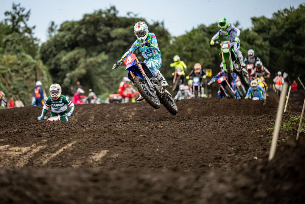 決勝レース、スタートを決めたのは川井。イン側のグリッドから完璧なスタートでホールショットを奪う。2番手には#4楠本菜月(TEAM HAMMER/ホンダ CRF150R)、3番手には#12大久保梨子(KTM TOKAI RACING with ゆめチャンネル&331/KTM 85SX)が続く。一方、予選トップの川上は出遅れてしまう。レース序盤、2番手を走行していた楠本が転倒で後退。代わって#6箕浦未夢(TEAM ITOMO/ホンダ CRF150RⅡ)が2番手に浮上する。さらに、後方から追い上げてきた川上が楠本をパスして3番手につけると、驚異的なペースでトップ2台を猛追。レース中盤、ついに川井、箕浦、川上の3台による三つ巴のトップ争いが勃発する。