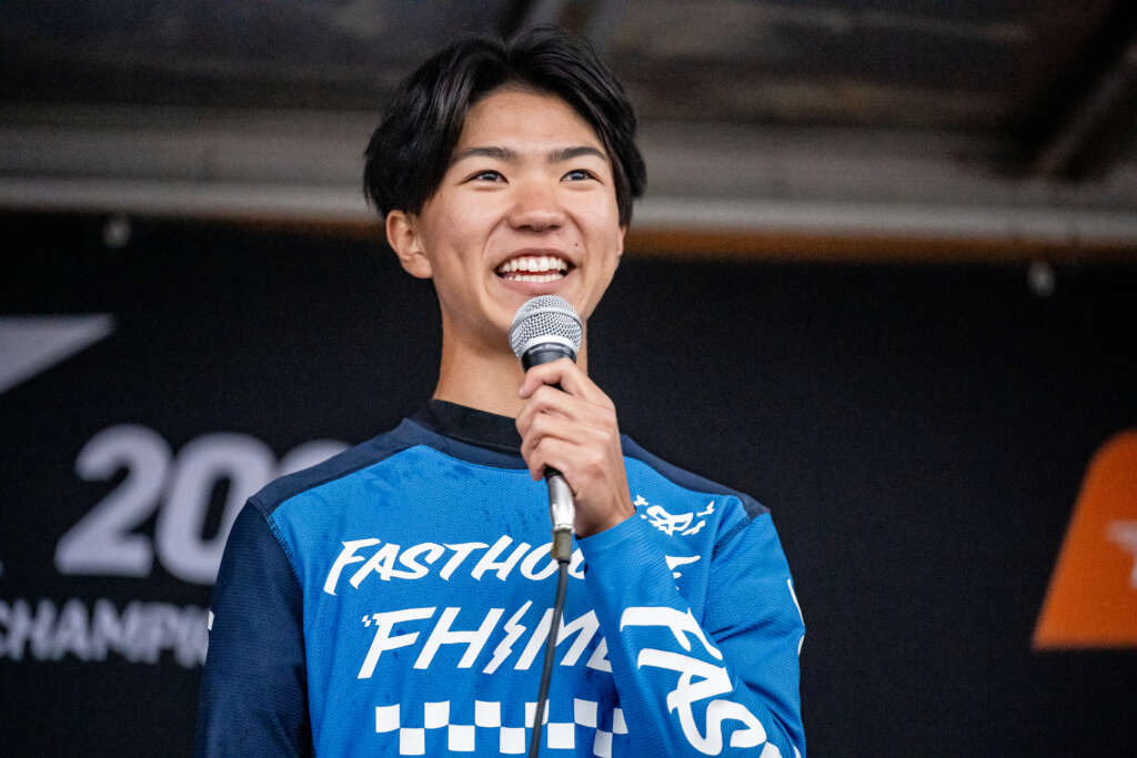 「地元大会ということで気合も入っていたのですが、ヒート1は不甲斐ない走りをしてしまい、順位を大きく落としてしまいました。ヒート2で挽回して、初めて表彰台に上ることができて、支えてきてくれた方に恩返しができたかなと思います。コースは苦手意識があったのですが、地元大会で表彰台に上りたいという思いがあったし、応援してくれる人も多くいたので、いつも以上にアクセルを回せたと思います。次は優勝を狙います」