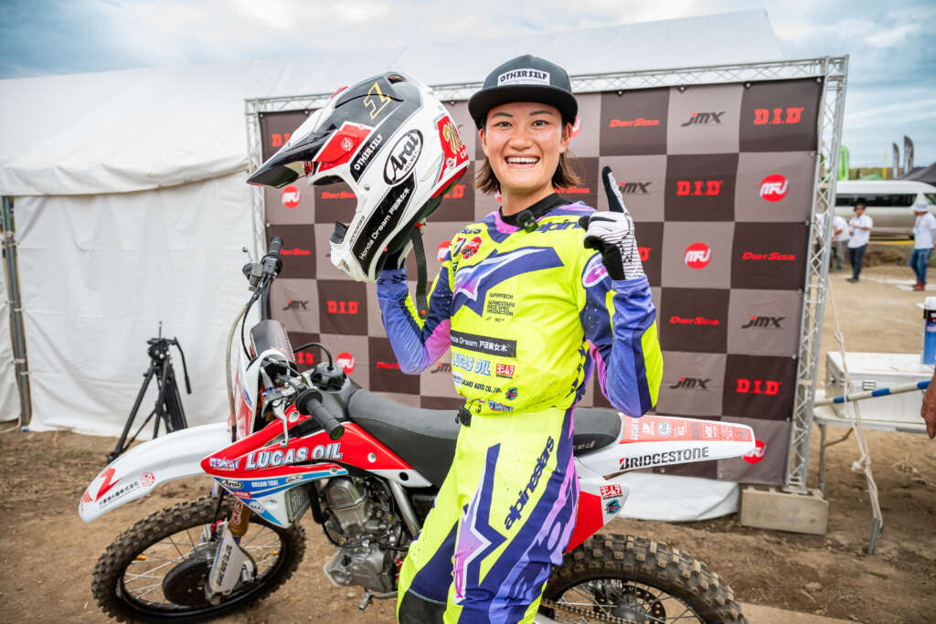 「モトクロス・オブ・ネイションズで世界のレベルを痛感して、なおさら日本では負けてられないと強く思ったので、結果に出てよかったです。地元ということもあって本当にたくさんの人が応援してくれて力をもらいました。次も負けないです」