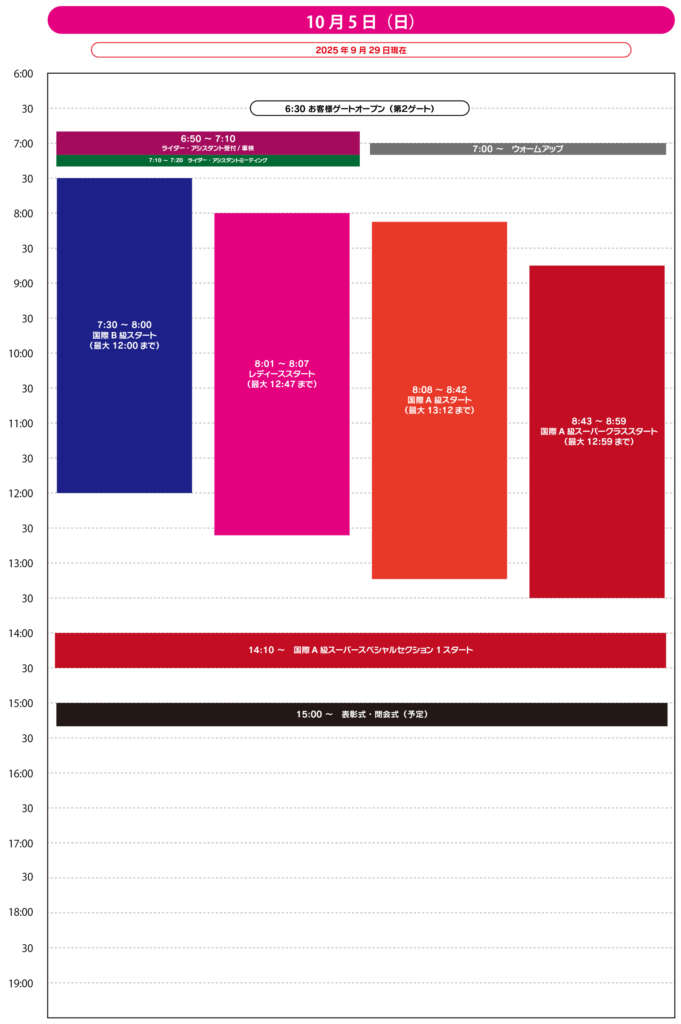 ◎ 8:08~ 国際A級 スタート (1分おき1台)