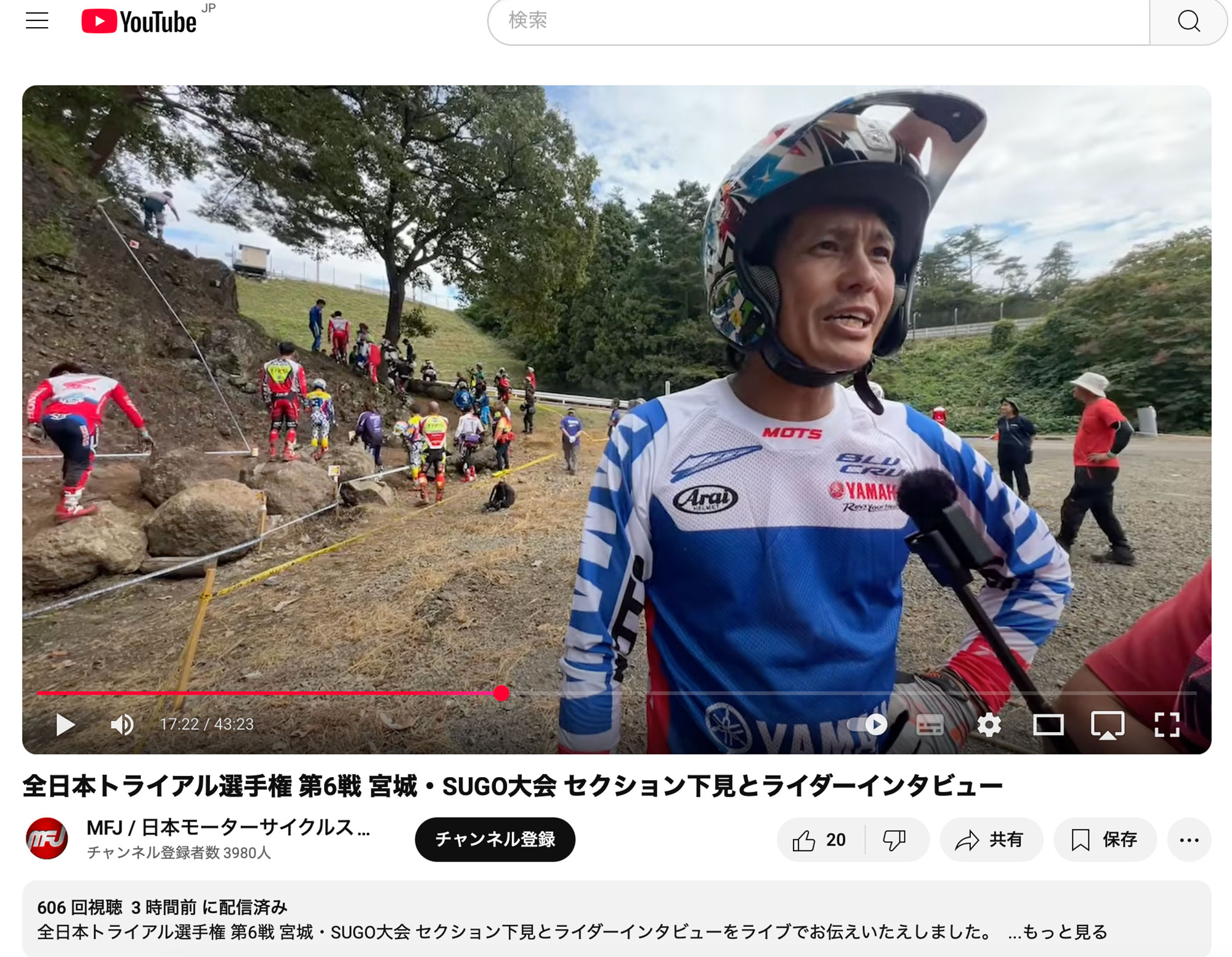 10月5日(日)全日本トライアル選手権 第6戦 宮城・SUGO大会、開催前日(10月4日/土)セクション下見中の選手インタビューをライブ配信しました。