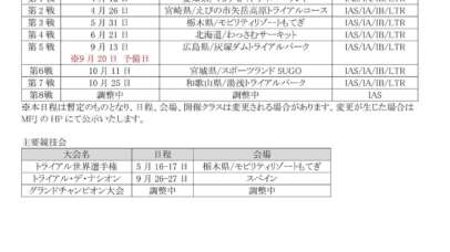 2026MFJ全日本トライアル選手権シリーズの暫定開催日程が決定しました。 国際A級スーパークラスは全8戦、国際A級/レディース/国際B級は全7戦で行われます。