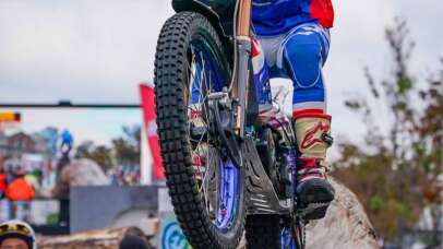 2024年11月3日 大阪府大阪市中央公会堂・中之島通り 動員数:7,000人 2024年全日本選手権は、今年もシティ・トライアル・ジャパン大会が最終戦となった。第7戦SUGO大会が終わった時点でランキング10位までに入った選手に参加の資格がある。ランキング11位以降の選手は、第7戦時点でランキングが決定する。トップ10、そしてチャンピオン争いは、この大会が最後の勝負となる。 昨年は突然の雨で、セクション部材とした無垢の丸太がツルツルに滑り、その対処に難儀をした。今年も土曜日は台風の余波で大雨になり、昨年の二の舞いが心配されたが、しかし当日は朝から晴れ渡って、多少のグリップの悪さは残ったものの、コンディションはなかなか良好となった。今大会は、有料の観客席が設けられ、熱心なファンにはありがたい観戦環境となった。無料の立ち見席は健在だ。 セミ・ファイナル 試合のプロローグはセミ・ファイナルから。設営された4セクションを往復して全8セクションをトライしてファイナルへの進出権を争う。このスタート順は、第7戦終了時点のランキングによっている。 第7戦でシティ・トライアル・ジャパン大会への出場権を得た黒山陣、久岡孝二、そして藤波貴久の3人が最初にトライする。黒山は過去2回、少年ライダーのデモンストレーションとしてこの大会に彩りを添えていたが、今回はきっちり選手として登場となった。ファイナル進出はならなかったが、果敢なトライに観客から大きな声援が飛んでいた。 15才の中学生、黒山陣の果敢なトライ藤波はさすがのトライ。しかしその実、足のつけない戦況になることを予想して、緊張に包まれつつのトライだった。 ホンダの電動トライアルマシン、RTL ELECTRICで3連勝した藤波貴久セミファイナルは往路の4セクション、復路の4セクションで争われたが、前半のトップは藤波の1点、これを2点で小川友幸、氏川政哉、小川毅士が追う展開。しかし復路の4セクションで小川友幸と氏川が5点を喫し、小川毅士はふたつの5点で順位を落とした。代わって黒山健一が4セクションをオールクリーンして順位を上げてきた。 セミ・ファイナルの8セクションを終えて、トップ6が決まった。ファイナル進出がならなかったのは久岡孝二、黒山陣、そして華麗なライディングを披露しながら、4つの5点でスコアをまとめられなかった柴田暁。柴田はこのセミ・ファイナル敗退でランキングも6位と逆転を許した。なお、本来この大会に出場しているはずの野﨑史高は、ひざの負傷で療養中につき欠場。会場ではライディング解説役として活躍した。 レディースレース お昼休みには、山森あゆ菜、中川瑠菜、米澤ジェシカ、小玉絵里加の4人による、レディースライダーのデモンストレーション・レースが行われた。本来なら、土曜日に行われるはずだったが、悪天候の影響でこの日におこなうことになったもの。第1セクションの一部を使ってのトライは、いつもとは異なる難度の高さだったが、4人の女性陣は果敢にこれに挑戦し、熱心な観衆をわかせていた。 レディースレースに出場した4選手。左から小玉絵里加、米澤ジェシカ、中川瑠菜、山森あゆ菜2023-2024レディースチャンピオン、山森あゆ菜のライディングファイナル ファイナルは第1と第2、その逆走の第7、第8の4セクションで競われた。セクションはセミ・ファイナルから変更がなし。すでにクリーンの出ているセクションだが、足が出せない勝負にもなった。そしてまた、少しのミスで5点にもなれる設定ゆえ、まったく油断ができないファイナルの戦いとなった。 藤波が2点、小川友幸と氏川政哉が同点の7点、セミ・ファイナル後半をオールクリーンした黒山健一が8点でこれに続く。藤波に続いて、チャンピオン争いの3人がきれいに2位から4位までに並んでのファイナル開始だ。ファイナルはセミ・ファイナルの順位にしたがってトライ順が決められている。 必勝を目指す藤波、V14目前の小川友幸、そしてタイトル奪還を目指す黒山健一の集中力は見事だった。両者とも、是が非でも足をつかない気迫のトライが続く。たいして武田呼人、小川毅士、氏川にはミスが出た。武田は第1、第2を連続5点、氏川は第7で足が出て、第8ではタイムオーバーで5点となり、かろうじて可能性の残っていたタイトル争いに自ら終止符を打ってしまった。小川毅士に5点はなかったが、1点、3点と減点を重ねた。小川毅士は第8で唯一高い丸太から高い丸太に一気に飛んで会場をわかせたが、順位は5位となった。しかし小川は、これでランキング4位を獲得している。 氏川政哉は4位。シリーズランキング3位果敢なトライを見せ続けた小川毅士は5位。シリーズランキング4位勝負の焦点は、藤波とホンダの電動RTLの全日本3連覇なるか、小川友幸と黒山健一、タイトルを得るのか。先行してトライを終えた黒山は、ファイナルの4セクションをオールクリーンした。点差は1点。セミ・ファイナル終了時点でクリーン数も同一なので、小川が1回